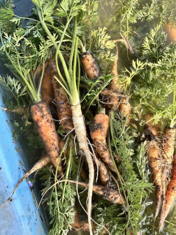 余談ですが、今日間引いたにんじん🥕にもこんなびっくりにんじんがありました‼️